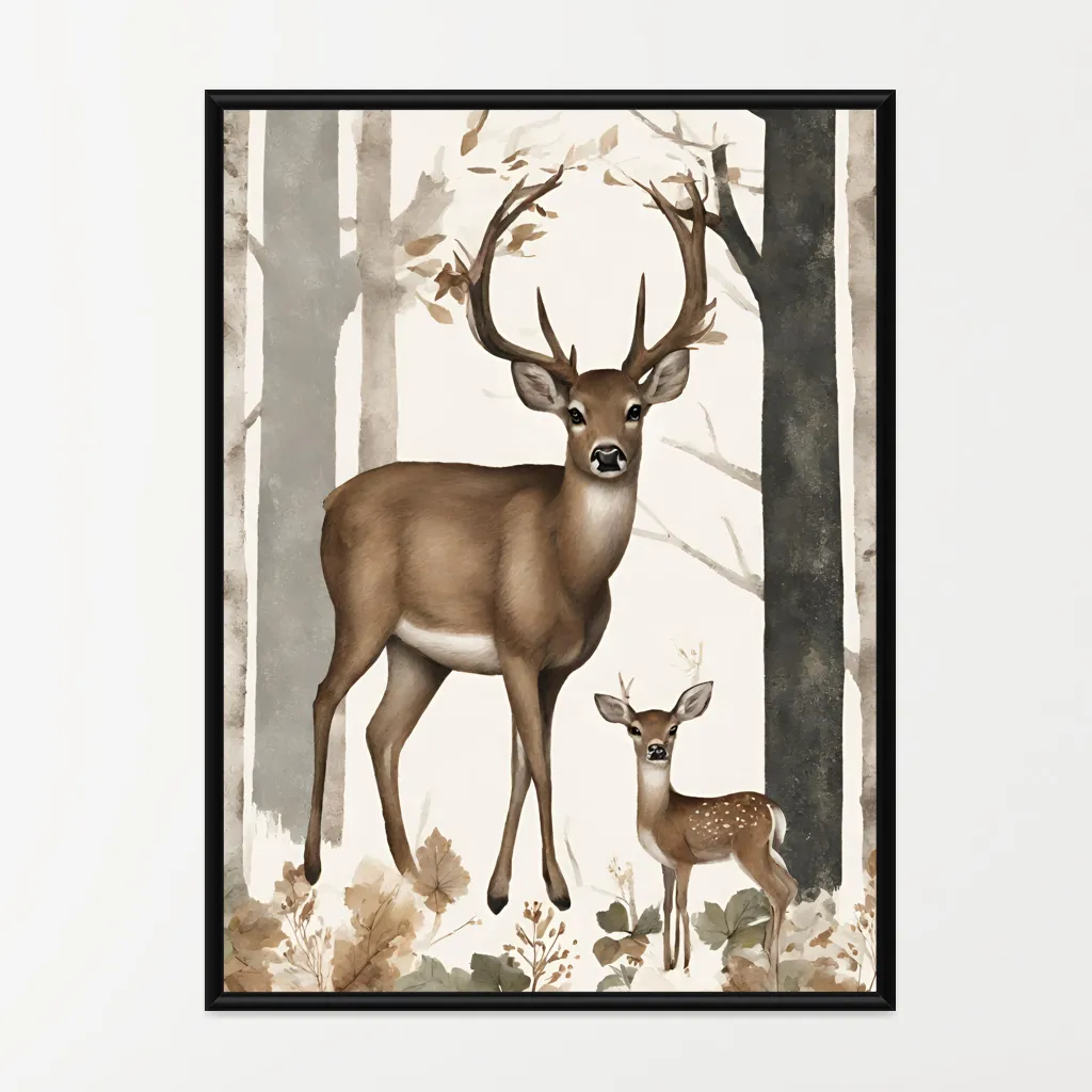 העניקו לביתכם אווירה שלווה וטבעית עם התמונה "Deer Haven". יצירת אמנות מדהימה זו מציגה זוג איילים עומדים בנוף יער קסום, מוקף בצמחייה ותנועת העלים העדינה. האייל הבוגר והצעיר משדרים תחושת ביטחון ושלווה, תוך שהאומנות בפרטים ובגוונים הרכים יוצרת תחושת חום והרמוניה. התמונה המופלאה הזו תוסיף נגיעה של יופי ואלגנטיות לכל חלל בבית. "Deer Haven" היא בחירה מושלמת לכל מי שרוצה לשלב אהבה לטבע בעיצוב הבית.