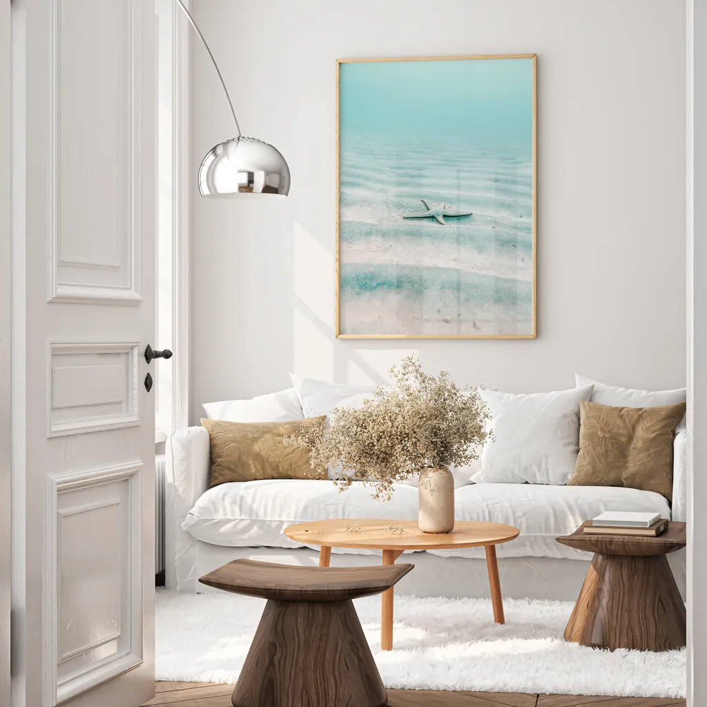 תמונה "Azure Sands" לוכדת ברוגע יוצא דופן את יופיה של קרקעית הים המזמינה במימיה הצלולים של הים. כוכב הים הנח על חול הים משרה תחושת שלווה ואינסופיות ומביא אליכם הביתה את הקסם המהפנט של המעמקים. התמונה מושלמת לכל חלל, ומעניקה נגיעה טבעית ועדינה שתרגיע ותעשיר את האווירה. הקנו לביתכם מראה מרענן ומלא חיים עם יצירת אמנות ייחודית זו.