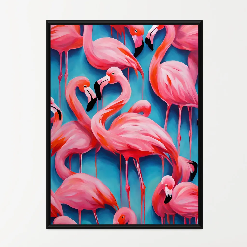 גלו את הקסם הבלתי נשכח של התנועה והחן עם "Flamingo Dance" – יצירת אומנות מרהיבה שמתעוררת לחיים במלוא עוצמתה על קנבס איכותי. התמונה מציגה להקה של פלמינגו ורודים בוהקים, נעים בהרמוניה על רקע צבעי תכלת עמוקים ומרגיעים. כל פרט מוקפד, מהכנפיים המפרפרות ועד למבטים הסקרנים, הופך את היצירה למושכת את העין ולתוספת המשדרגת כל חלל.