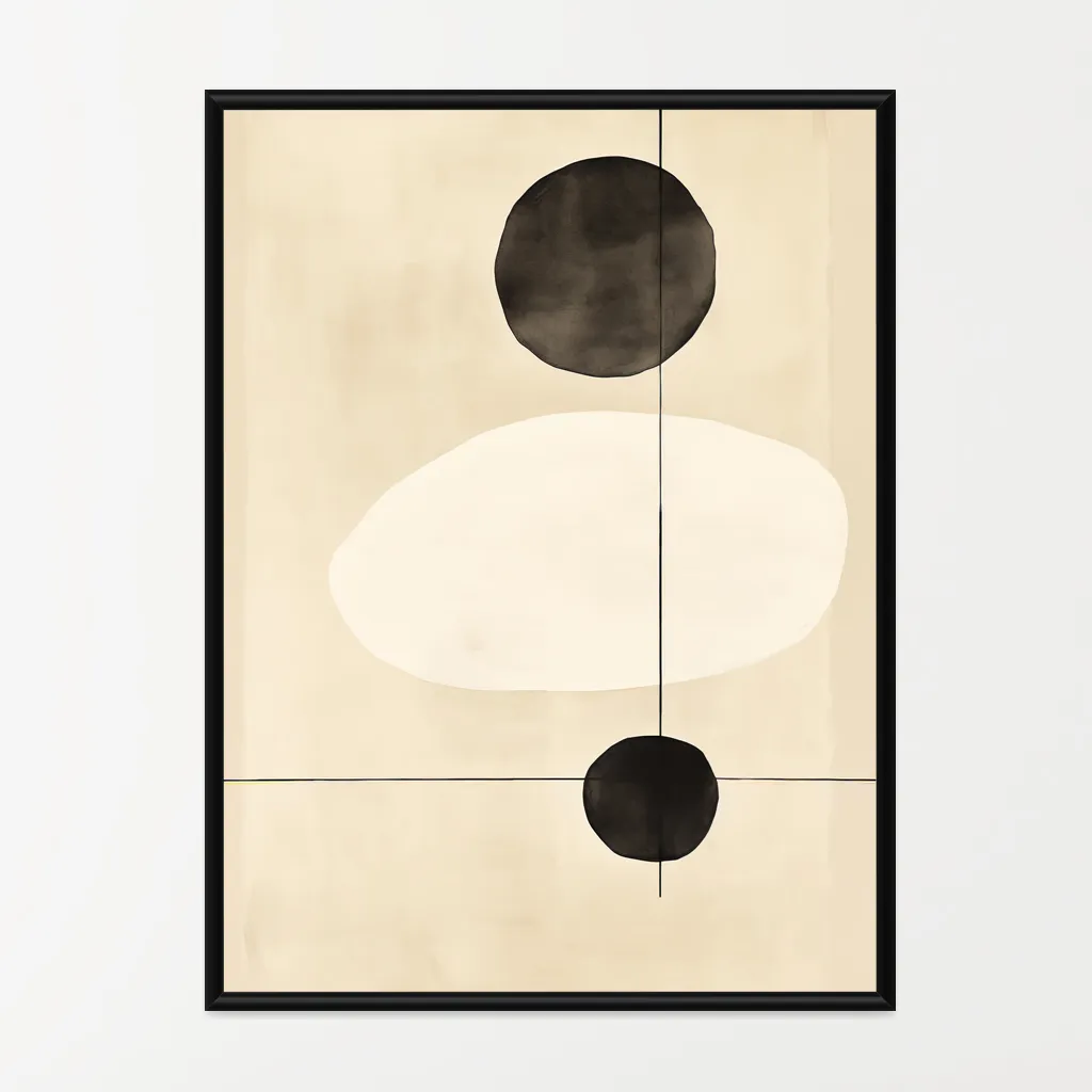 התמונה "Geometric Stillness" הינה יצירת אמנות מודרנית המשלבת צורות גיאומטריות נקיות ומינימליסטיות. יצירה זו, הניצבת בין עולם האבסטרקטי למציאותי, מציגה איזון מושלם בין עיגולים וקווים הנראים כסמל לרוגע ושקט. הצבעים הניטרליים והניגודים המעודנים הופכים אותה ליצירה אידיאלית שתוסיף אלגנטיות וסגנון לכל חלל בביתכם. תכניסו נופך של רוגע ואסתטיקה מודרנית בעזרת "Geometric Stillness" ותנו לאמנות לדבר בעד עצמה.