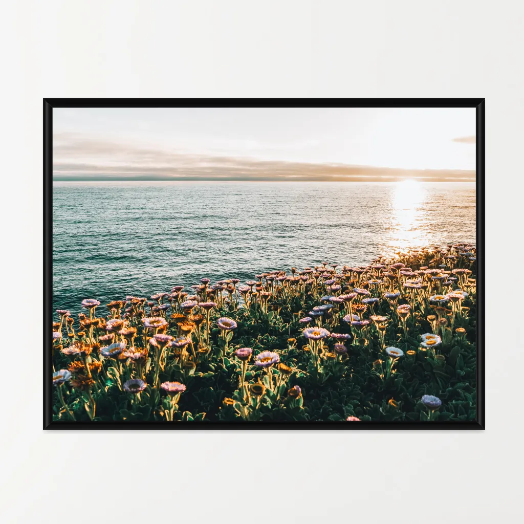 תאר לעצמך את השלווה והרוגע שמביאים לך פריחה צבעונית ושקיעה מרהיבה. "Sunset Blooms" היא יצירת אמנות עוצרת נשימה המציגה נוף מרהיב של פרחים יפהפיים הנשקפים אל עבר ים אינסופי ונוגע בשמש השוקעת. השילוב של גבולות הטבע המגוונים והעזים עם הרקע השלו והשקיעה הרכה יוצרים תמונה מושלמת שתוסיף חמימות ורוגע לכל חלל בביתך. הכניסו את הקסם של הטבע לתוך הבית שלכם עם "Sunset Blooms" ותנו ליום שלכם להתחיל באווירה שלווה ומרגיעה.