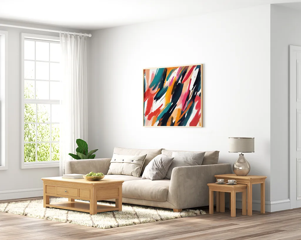 תמונה זו, הנקראת "Energetic Strokes", הינה יצירת אמנות עוצרת נשימה שתכניס לביתכם תחושה של תנועה, תשוקה ואנרגיה מתפרצת. הקווים הדינמיים וצבעי הניאון הבולטים של הציור יוצרים הרמוניה סוחפת שתעורר את החדר ותרומם את מצב הרוח. מדובר בפריט נועז ומודרני המושלם לסלון, לחדר העבודה או לכל חלל המעוניין בשדרוג מראה ונגיעה אמנותית רעננה. העניקו לביתכם טאץ' ייחודי והכניסו את העוצמה המתפרצת של "Energetic Strokes" אל הקירות שלכם!