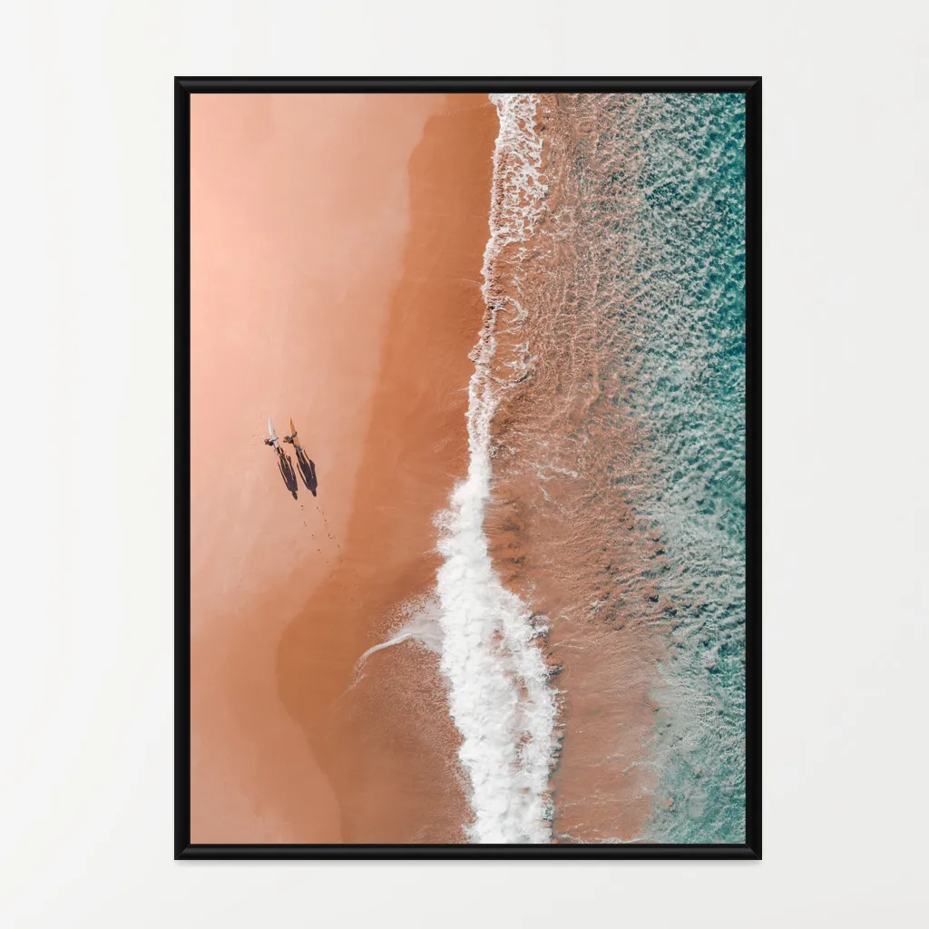 התמונה "Coastal Companions" לוכדת את היופי האינסופי של החוף במבט מרהיב מלמעלה. הקצף הלבן של הגלים המלטפים את החול הזהוב וההולכים לצדך לאורך החוף יוצרים יחד הרמוניה של טבע ושקט. זוג הדמויות הקטנות המשאירות עקבות בחול מוסיפות רובד של חיים ואהבה לנוף המהפנט הזה. התמונה מושלמת להוספת נגיעות של חום ושלווה לכל חלל בביתכם, ומביאה עמה תחושה של חופש ונחת. תנו לקיר שלכם לדבר בעד עצמו עם "Coastal Companions" – יצירת אמנות שתשדר קלילות והשראה בכל מבט.