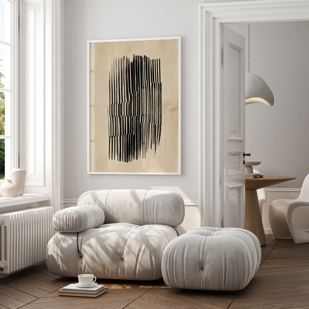 הכירו את "Shape Symphony" – יצירת אמנות מופשטת ומודרנית שתרתק את העין ותוסיף מגע אלגנטי לכל חלל בביתכם. הצורות הגאומטריות המפוסלות בשחור קלאסי מעניקות איזון מושלם בין פשטות לאסתטיקה. התמונה יוצרת תחושת סדר והרמוניה ומזמינה את הצופה להרהר במשמעות העומדת מאחוריה.