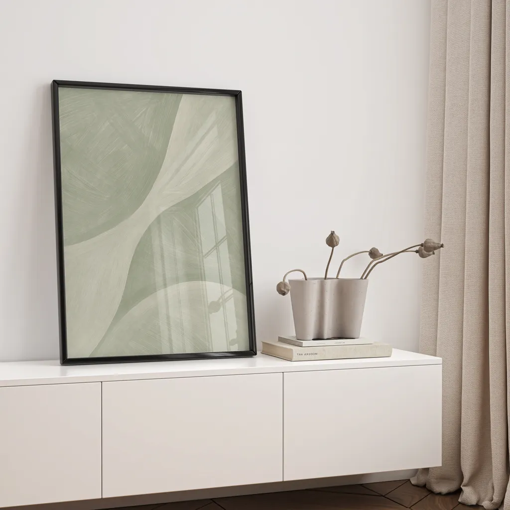 התמונה "Green Meander" מציגה תנועה הרמונית של קווים וגלים בגוונים ירוקים עדינים, המשרים תחושת רוגע ואיזון. היצירה משתלבת באופן מושלם בכל חלל, ומוסיפה נגיעה של אלגנטיות טבעית ומודרניות עכשווית. עם העדינות שלה, "Green Meander" תהפוך כל חדר למקום של שלווה והשראה. תנו לביתכם את הנגיעה האמנותית שהוא זקוק לה, והזמינו את האווירה שאתם מחפשים.