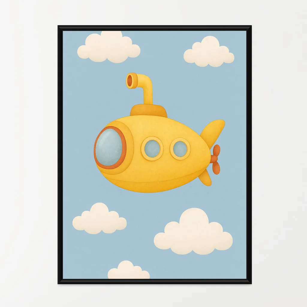 גלה עולם של דמיון וחלום עם יצירת האמנות המקסימה "צוללת מעופפת". תמונה זו מציגה צוללת ייחודית בצבעים מרהיבים, הדואה בין עננים לבנים ברקע כחול ורך. העיצוב השובה לב מוסיף נופך של קסם ושובבות לכל חלל. מושלם לחדרי ילדים, פינות יצירה או פשוט להוסיף תחושת פלא לכל מקום בבית. תן ליצירה זו לעורר את הדמיון של כל מי שיחזה בה ולהיות מוקד של השראה בכל יום מחדש.