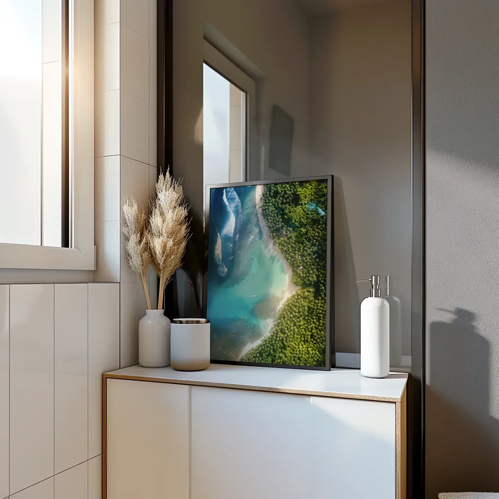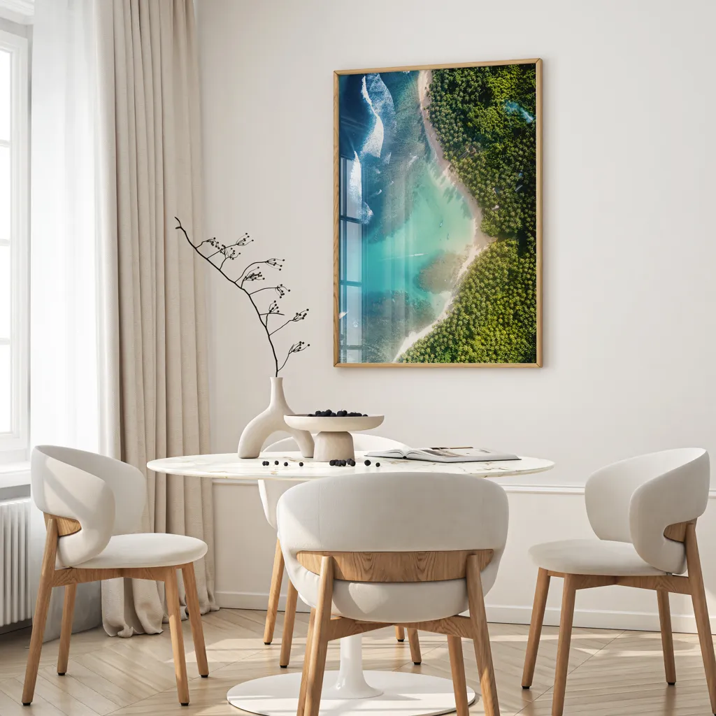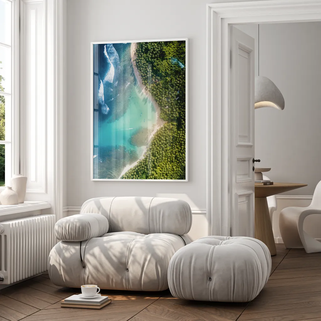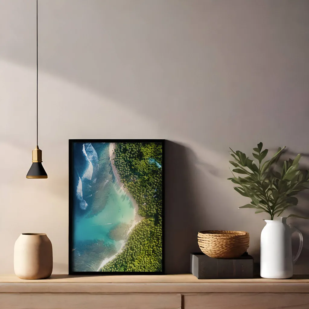 גלו את חוויית ה"אסקפיזם" האולטימטיבית עם "Hidden Paradise" – תמונת נוף מרהיבה שתכניס קסם מיוחד לכל חלל בביתכם. התמונה מציגה חוף טרופי עוצר נשימה עם מים צלולים בגוונים מהפנטים של טורקיז וירוק, המוקפים ביער עבות של עצי דקל. המבט האווירי מוסיף לתחושת הפלא וההרפתקה, וגורם לכם לחלום על אותו יעד מרוחק ופסטורלי. התמונה הזו היא פריט חובה לכל מי שמחפש להוסיף נגיעת רוגע וטבע פראי לביתו. תתכוננו לשמוע את רחש גלי הים ולהרגיש את השלווה בכל פעם שתסתכלו על "Hidden Paradise".