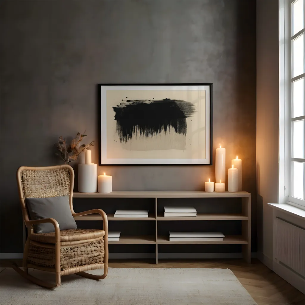 היכנסו לעולם של תחכום אמנותי עם "Ink Descent" – יצירה מרהיבה שמשלבת מינימליזם מודרני עם דינמיות מלאת הבעה. היצירה לוכדת את מהות היופי המופשט, כאשר דיו שחור עז זולג מטה באווירה מסתורית ואלגנטית. מושלמת להוספת טאץ' עכשווי לחלל הבית או המשרד, היצירה הזו מזמינה את הצופה ללכת לאיבוד בעומק ובמרקם שלה. רוממו את העיצוב שלכם עם Ink Descent ותנו לה להפוך לפריט המדובר שיקנה לחלל תחושת השראה של גלריה.