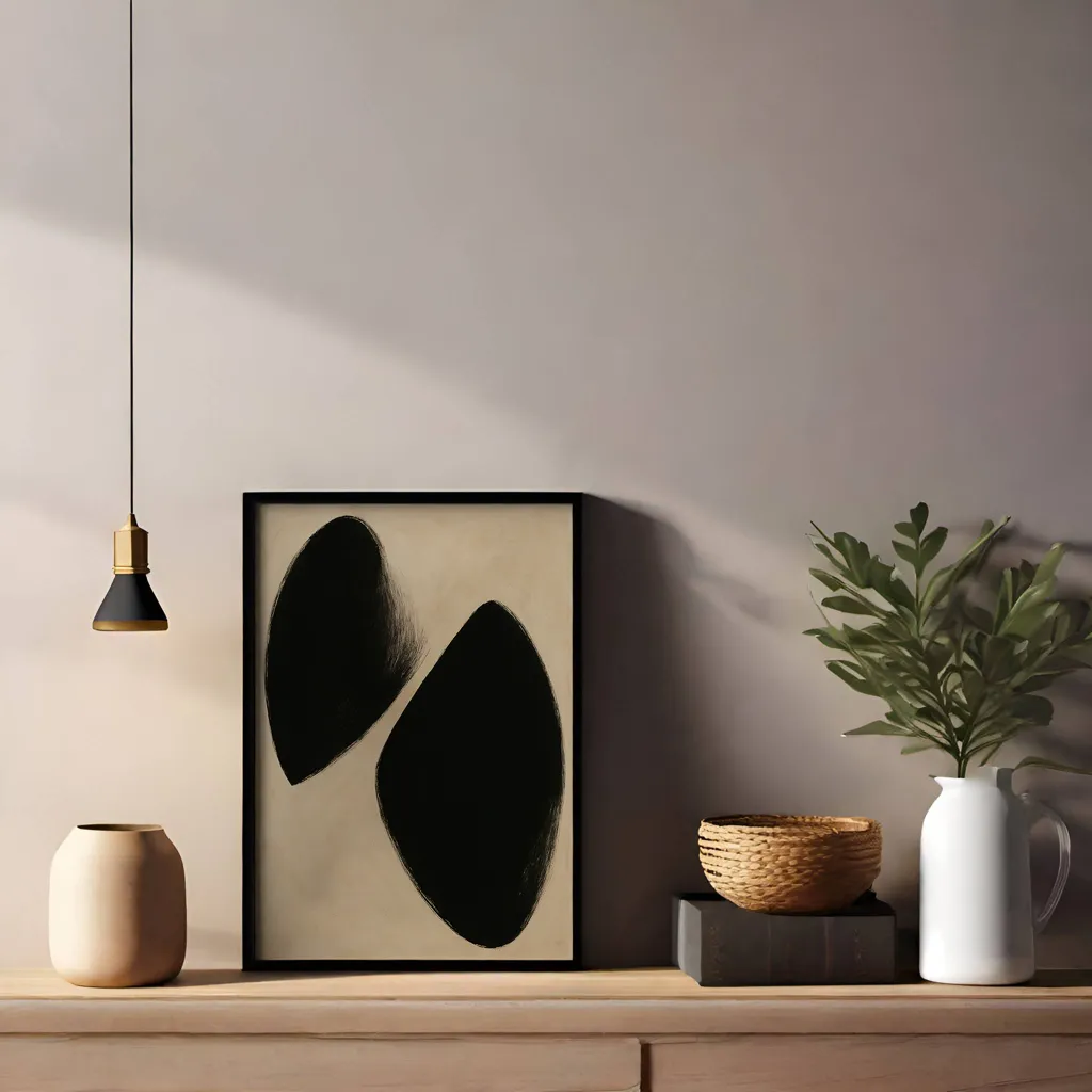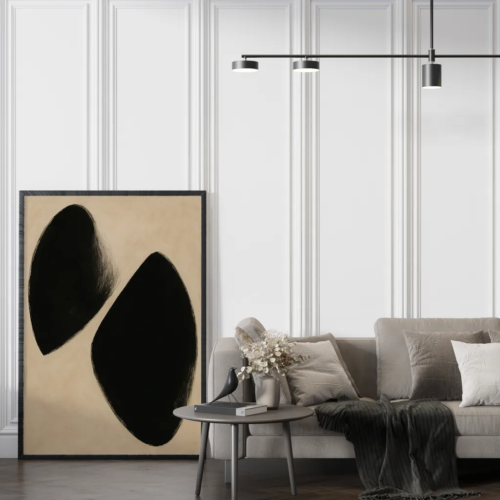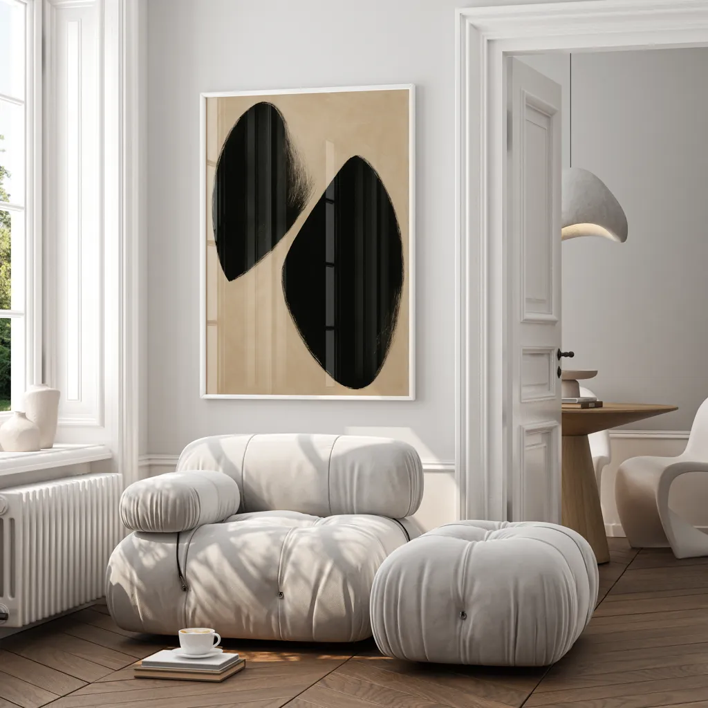 הכירו את "Shape Symphony" – יצירת אמנות מופשטת ומודרנית שתרתק את העין ותוסיף מגע אלגנטי לכל חלל בביתכם. הצורות הגאומטריות המפוסלות בשחור קלאסי מעניקות איזון מושלם בין פשטות לאסתטיקה. התמונה יוצרת תחושת סדר והרמוניה ומזמינה את הצופה להרהר במשמעות העומדת מאחוריה.