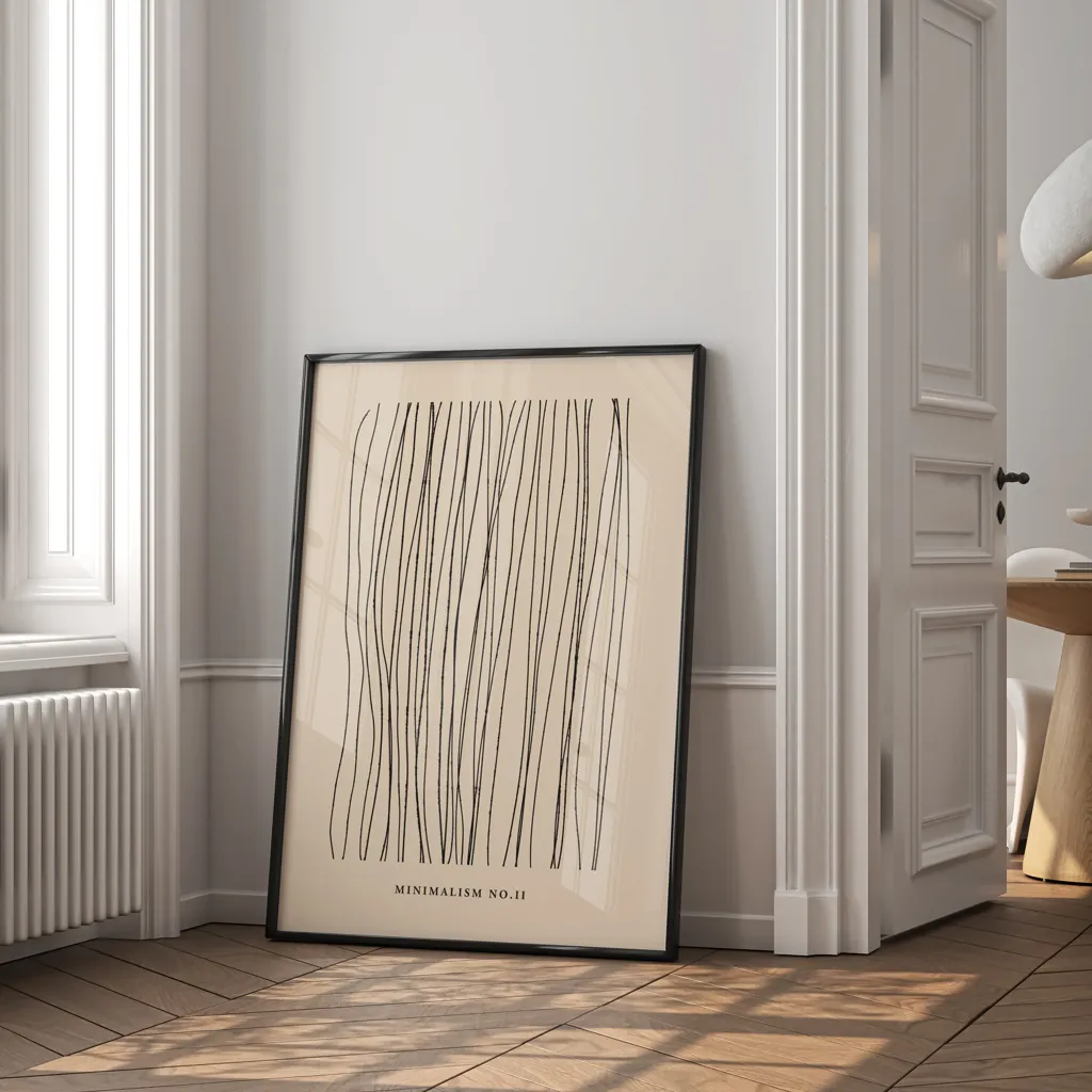 התמונה "Minimalism No." מציעה נגיעה של אלגנטיות ושקט בכל חלל שבו תתלו אותה. עם קווים נקיים ופשוטים היוצרים תנועה הרמונית על הרקע הבז', היצירה הזו היא ביטוי מושלם של אומנות מינימליסטית. זהו פריט חובה לחובבי העיצוב המודרני שישדרג כל חדר בבית או במשרד.