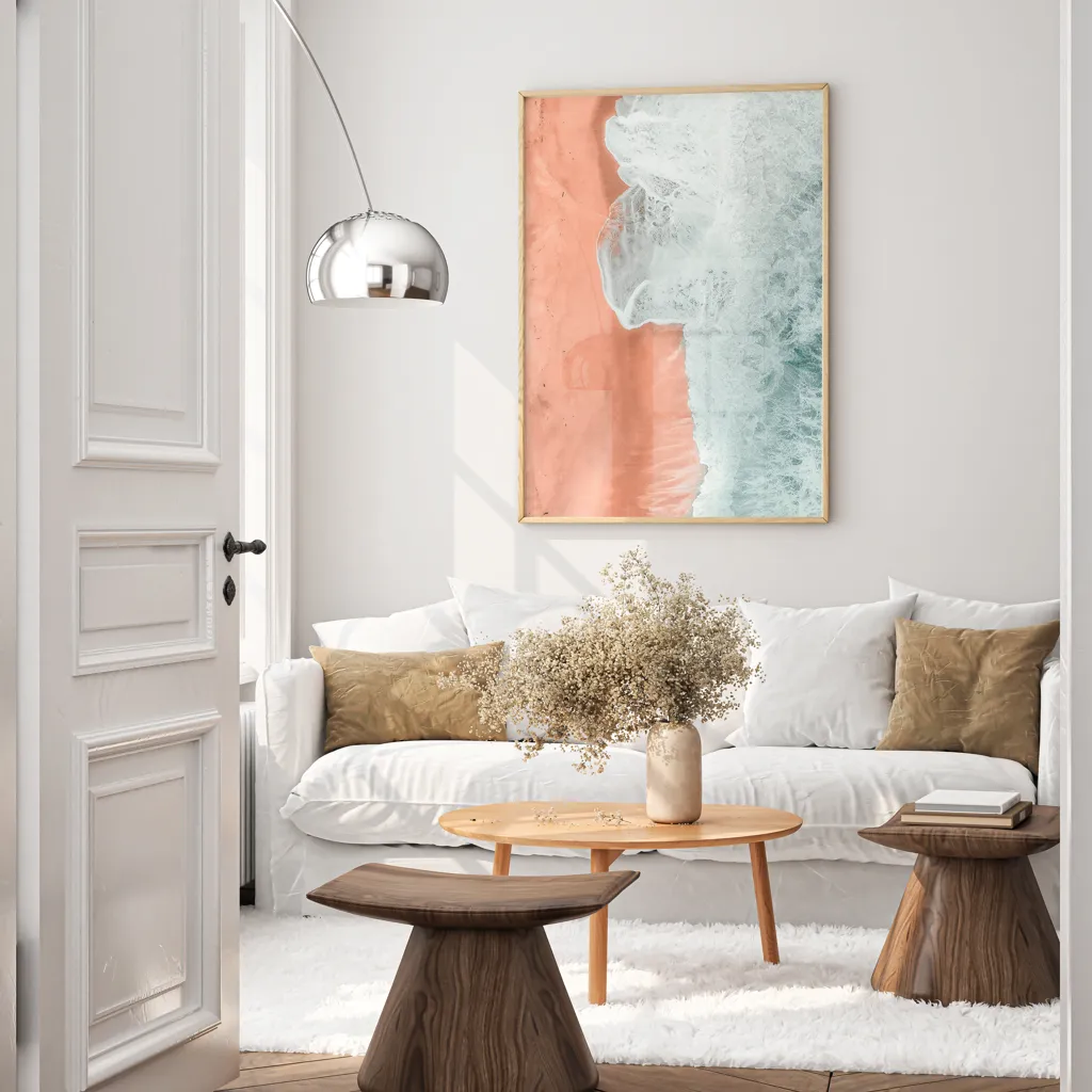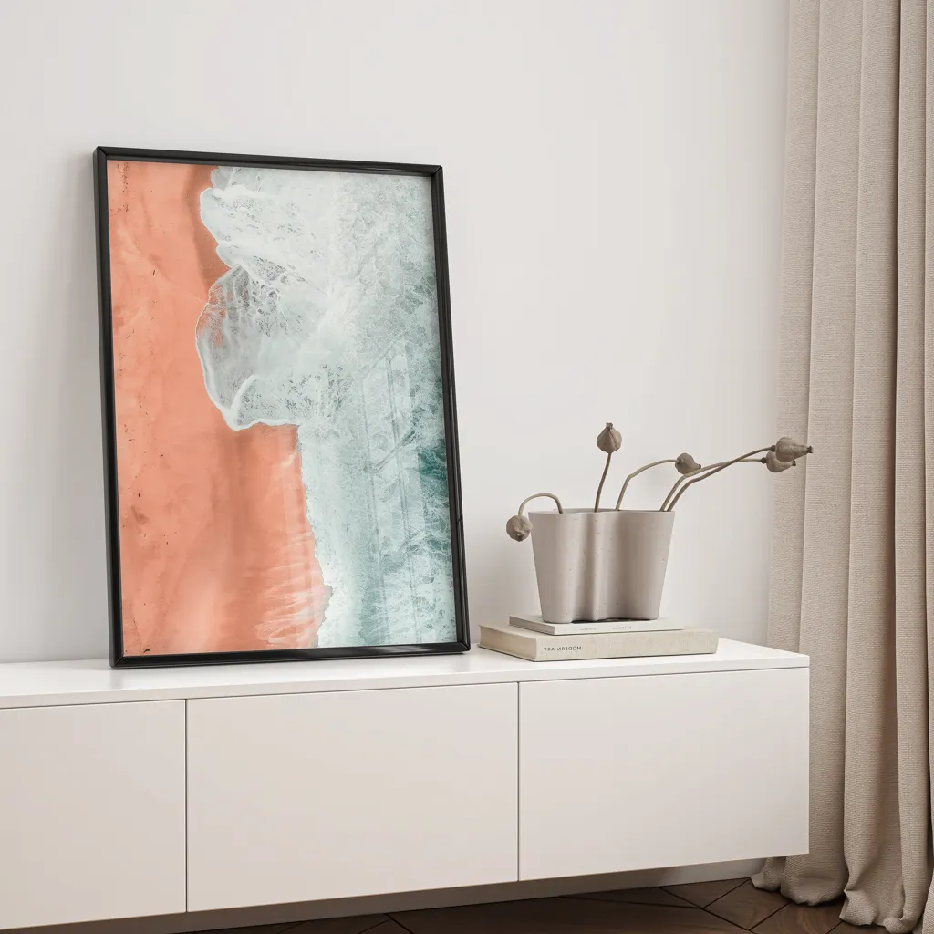 התמונה "Pink Wave" מציגה נוף מרהיב של חוף ים בו הגלים מתנפצים על רצועת חול ורודה יחודית. השילוב המדהים של גלי הים התכולים עם החול הורוד יוצר תחושה של שלווה ואסטטיקה יוצאת דופן. יצירה זו מוסיפה מגע ייחודי של צבע ורעננות לכל חלל, ומשדרת אלמנט של יופי טבעי וקסם. מתאימה לכל חדר בבית או במשרד, "Pink Wave" תהפוך כל קיר לחוויה חזותית שלא תשכחו. הוסיפו את השלווה של הים והצבעים המיוחדים לביתכם עם התמונה הייחודית הזו.