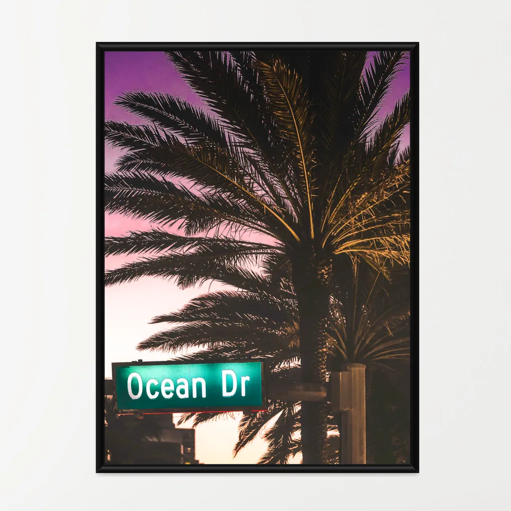 "הכניסו ניחוח של חופשה לביתכם עם התמונה המרהיבה 'Ocean Drive'. הלוח זורח באור ניאון קסום על רקע עצי הדקל והזריחה הצבעונית, ומעביר תחושת שלווה ורוגע המאפיינת את רחובות החוף הנוצצים. התמונה הזו תוסיף אופי ונופך טרופי לכל חלל שבו תבחרו לתלות אותה."