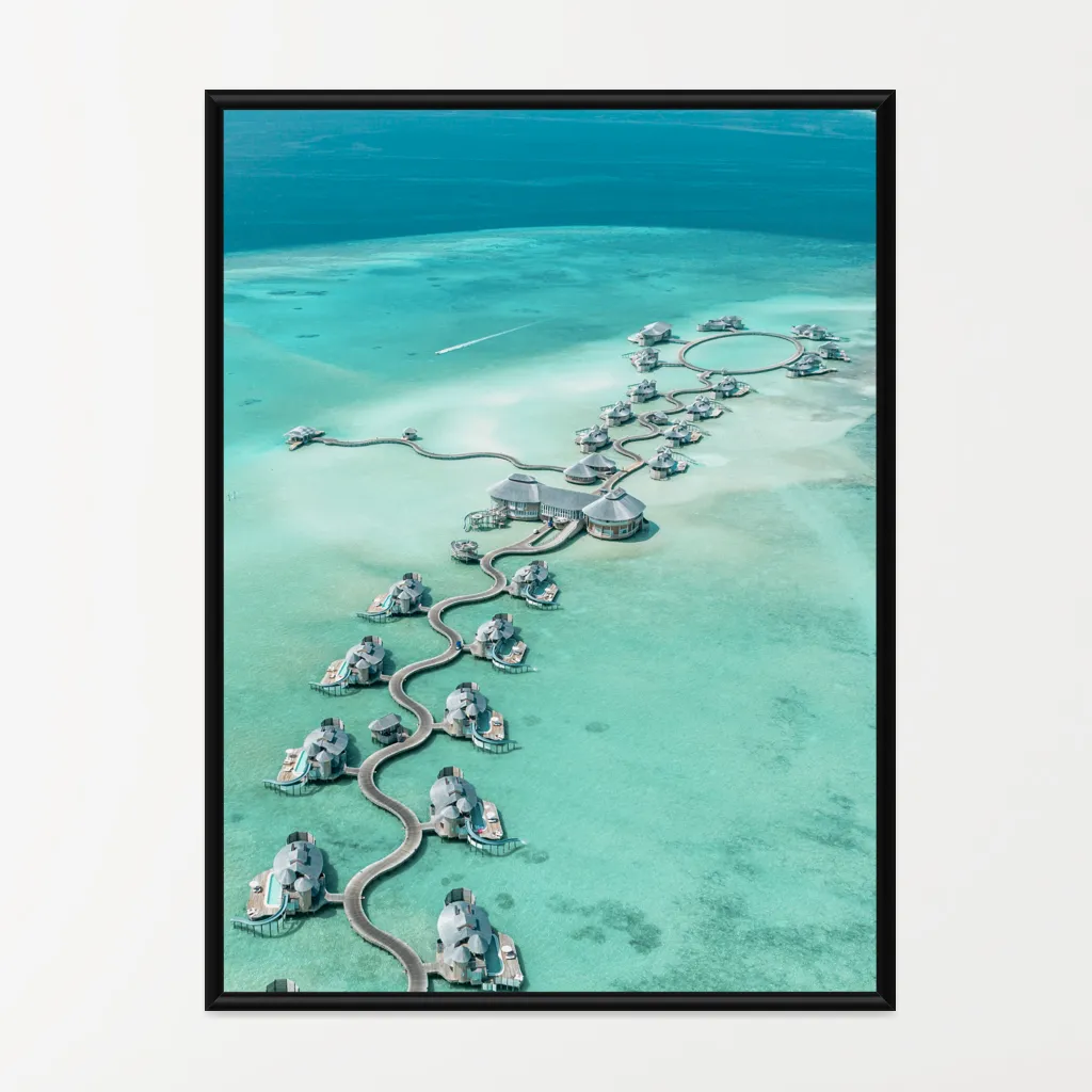 הכניסה לגן עדן ממש כאן על קיר ביתכם עם "Overwater Haven" – תמונה מרהיבה שתעביר אתכם אל מקלט טרופי מושלם. התמונה מציגה תצפית אווירית עוצרת נשימה של בקתות עץ יוקרתיות המושטות על פני מים טורקיזים צלולים, המקשרות ביניהן שבילים מעוקלים חינניים. הקסם של חופים לבנים ומי האוקיינוס הצחים יוצרים אווירה מרגיעה ושלווה, שישדרגו כל חלל בביתכם. הוסיפו נגיעה של שלווה ויוקרה עם "Overwater Haven" ותנו לדמיון שלכם לשוט אל עבר המקומות שאתם באמת חולמים להגיע אליהם.