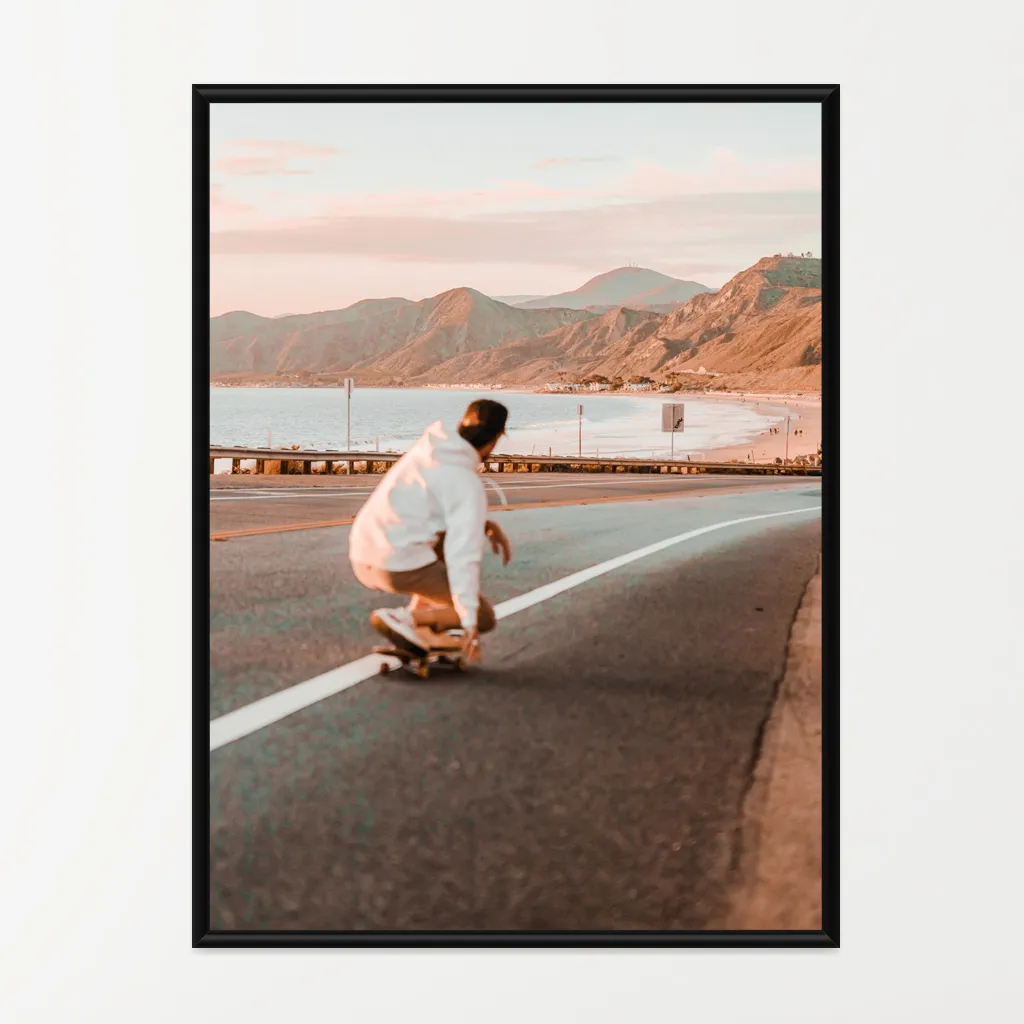 גלה את היופי שבחוויות הפשוטות עם תמונת "Sunset Skate". דמיינו עצמכם גולשים בערב מושלם, כשהשמש שוקעת ומאירה את השמיים בגוונים חמים ורכים. הנוף המרהיב של ההרים והים ברקע, בשילוב עם הריגוש של נסיעה מהירה על סקייטבורד, יוצרים תחושת חופש ואדרנלין שאין כמותה. תמונה זו תוסיף נגיעה של אקסטרים ורוגע לכל חלל בביתכם, ותזכיר לכם ליהנות מהרגע ולחיות את החיים במלואם. הוסיפו את "Sunset Skate" לאוסף שלכם וקבלו חוויה ויזואלית שתעניק השראה בכל יום מחדש.