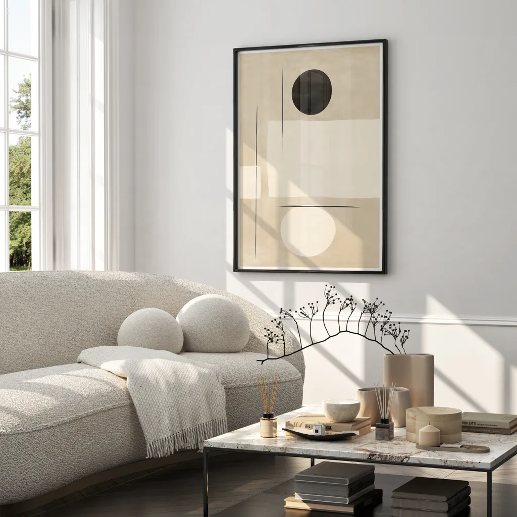 התמונה "Symmetry Play" מציגה עולם של הרמוניה ואיזון מושלם. עם שילוב יוצא דופן של צורות גיאומטריות, קווים עדינים ופלטת צבעים ניטרלית, היא מצליחה לייצר אפקט של שקט ושלווה. תמונה זו היא הבחירה המושלמת לכל חלל בבית או במשרד, כשהיא מוסיפה נגיעה של תחכום ואסתטיקה מודרנית. תנו לקירות שלכם לדבר בעד עצמם עם יצירת אומנות עוצמתית זו שתשאיר רושם בלתי נשכח על כל מי שיביט בה.
