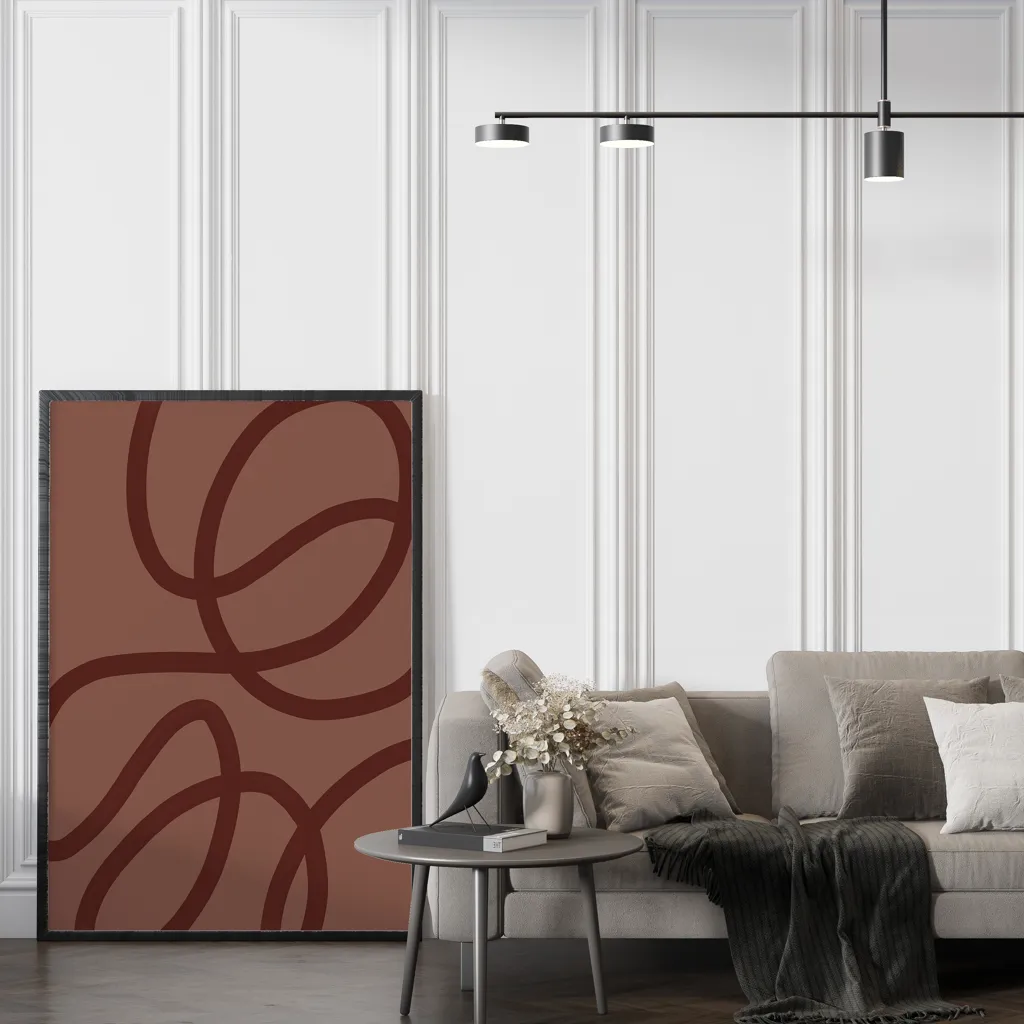 המוצר "Tangled Elegance" הוא תמונה עוצרת נשימה המשלבת עיצוב מודרני עם נגיעות של אלגנטיות וטבעיות. הקווים המשתלבים בגוון חום עשיר יוצרים אווירה של תחכום ושלווה, ומתאימים בצורה מושלמת לכל חלל מגורים מתוחכם. תמונה זו לא רק מוסיפה עומק וצבע, אלא גם מפיחה חיים בקירות הבית והופכת כל חדר לגלריה של אמנות מודרנית. תוספת מושלמת לעיצוב שמעורר השראה ומשדרג כל חלל.
