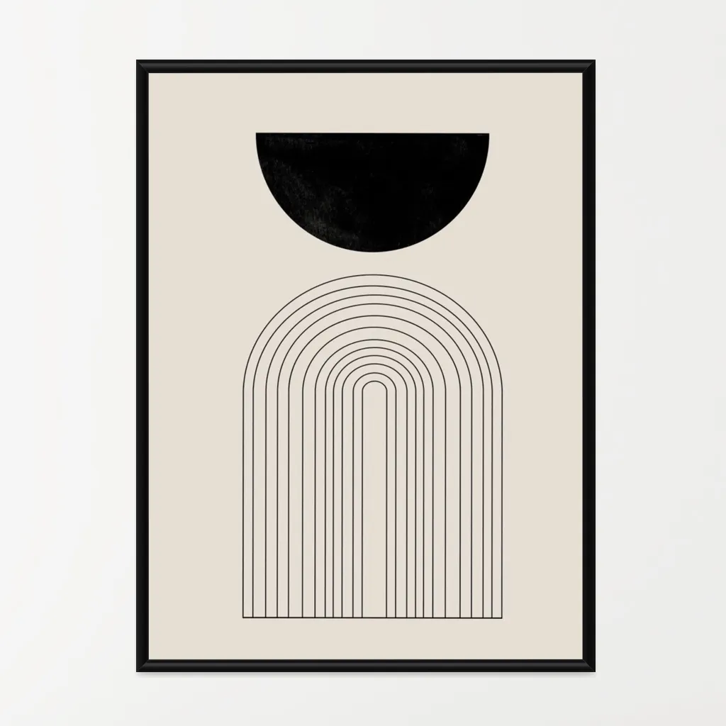 הכירו את "Arc Eclipse" – יצירת אומנות עכשווית שתכניס לביתכם נגיעה של מינימליזם יוקרתי. התמונה מציגה שילוב מרהיב של חצי עיגול שחור מושך, מעל לארקדות גיאומטריות מדויקות בקווים דקים ושחורים, על רקע צבע נייטרלי. עיצוב מאופק ומדויק זה מזמין תחושת רוגע ואיזון לכל חלל, ומשתלב באפן מושלם בסלון, חדר העבודה או חדר השינה שלכם. תנו ל"Arc Eclipse" להאיר את קירות ביתכם עם החזון האמנותי הייחודי והאלגנטי שלה.
